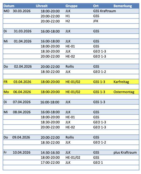 Trainingstermine Osterferien